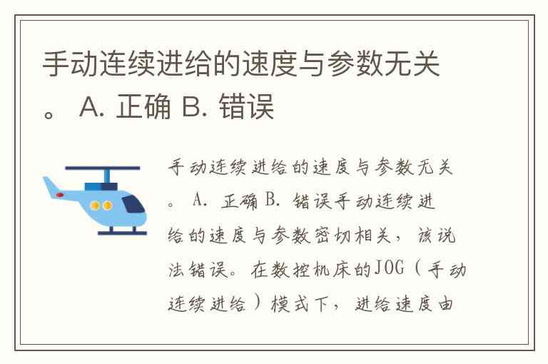 手动连续进给的速度与参数无关。 A. 正确 B. 错误