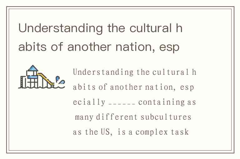 Understanding the cultural habits of another nation, especially ______ containing as many different subcultures as the US, is a complex task. A. one B. that C. the one D. those