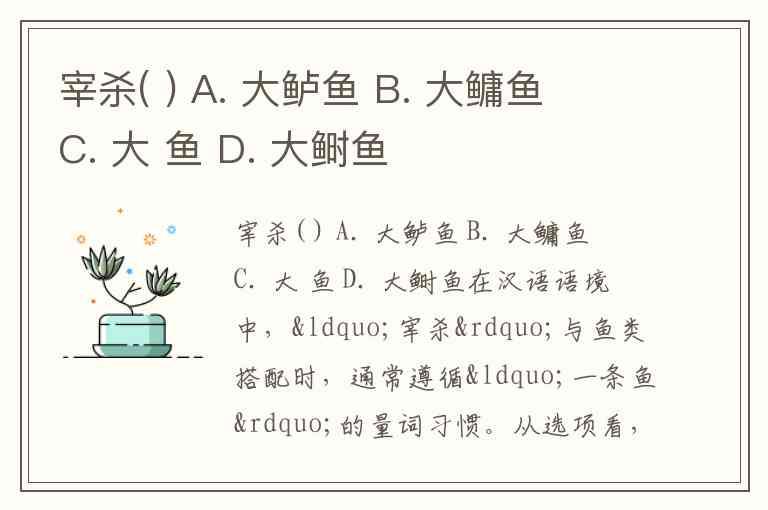 宰杀( ) A. 大鲈鱼 B. 大鳙鱼 C. 大 鱼 D. 大鲥鱼