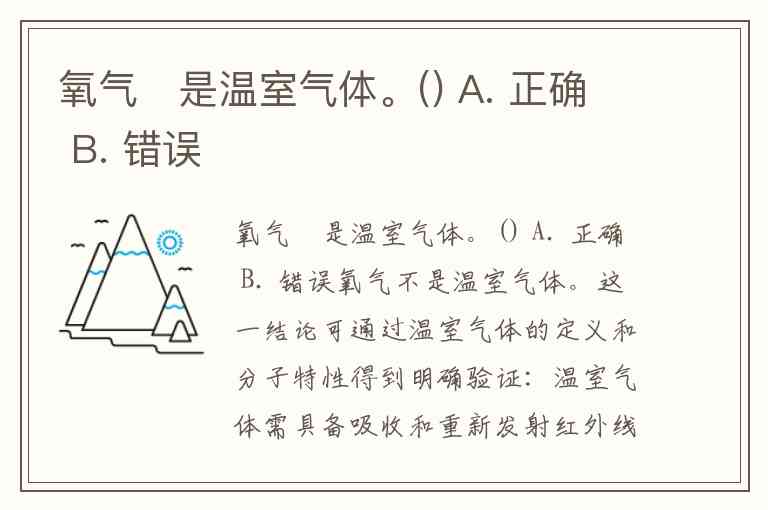 氧气不是温室气体。() A. 正确 B. 错误