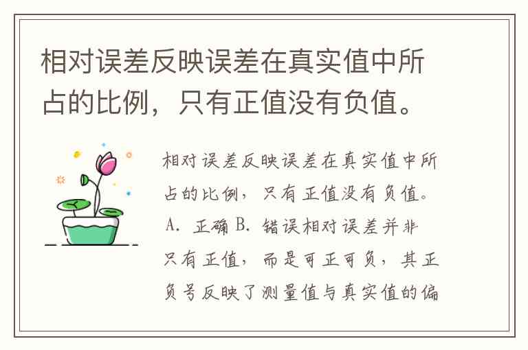 结论:题目表述错误,正确答案为 B。相对误差通过正负号反映测量值与真实值的相对大小关系,是量化误差方向的重要指标。