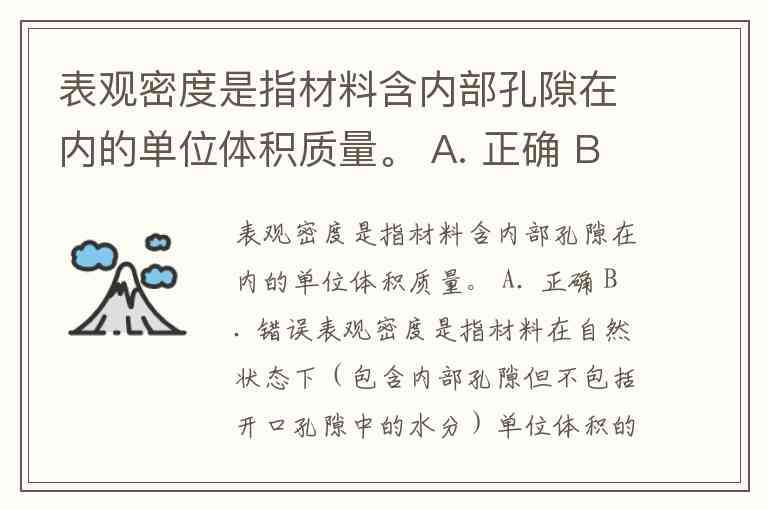 表观密度是指材料含内部孔隙在内的单位体积质量。 A. 正确 B. 错误