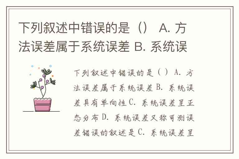 下列叙述中错误的是() A. 方法误差属于系统误差 B. 系统误差具有单向性 C. 系统误差呈正态分布 D. 系统误差又称可测误差
