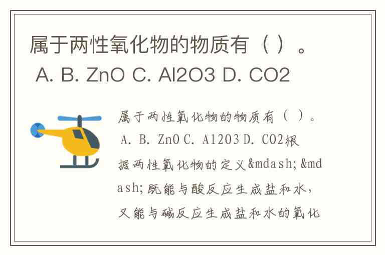 属于两性氧化物的物质有( )。 A. B. ZnO C. Al2O3 D. CO2