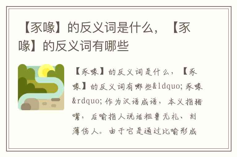 “豕喙”作为汉语成语,本义指猪嘴,后喻指人说话粗鲁无礼、刻薄伤人。由于它是通过比喻形成的贬义词,没有严格意义上的单字反义词,但可根据其核心语义“言辞粗鄙刻薄”,从不同维度找到表意相反的词语。