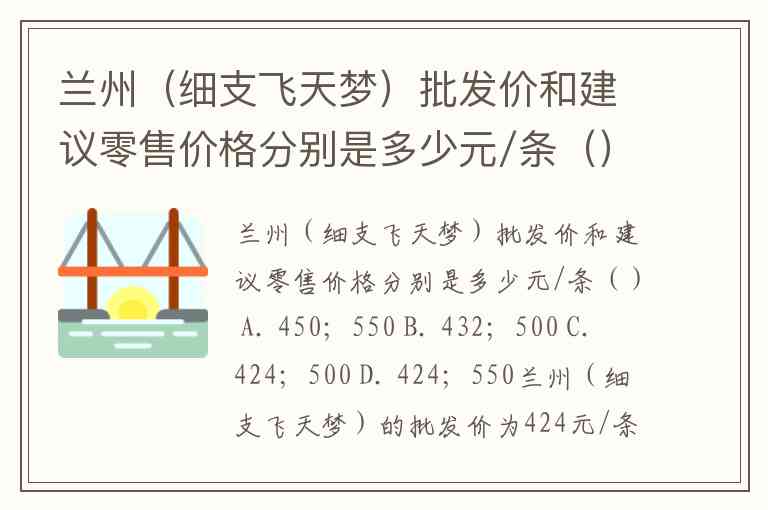 兰州(细支飞天梦)批发价和建议零售价格分别是多少元/条() A. 450;550 B. 432;500 C. 424;500 D. 424;550