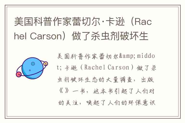 美国科普作家蕾切尔·卡逊(Rachel Carson)做了杀虫剂破坏生态的大量调查,出版《 》一书,这本书引起了人们对 的关注,唤起了人们的环保意识。