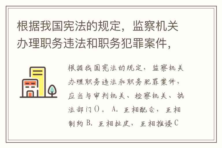 根据我国宪法的规定,监察机关办理职务违法和职务犯罪案件,应当与审判机关、检察机关、执法部门()。 A. 互相配合,互相制约 B. 互相扯皮,互相推诿 C. 互相干涉,互相融合 D. 互相渗透,互相抵制
