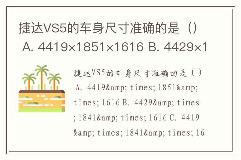 捷达VS5的车身尺寸准确的是() A. 4419×1851×1616 B. 4429×1841×1616 C. 4419×1841×1616 D. 4429×1851×1616