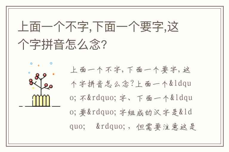 上面一个不字,下面一个要字,这个字拼音怎么念?