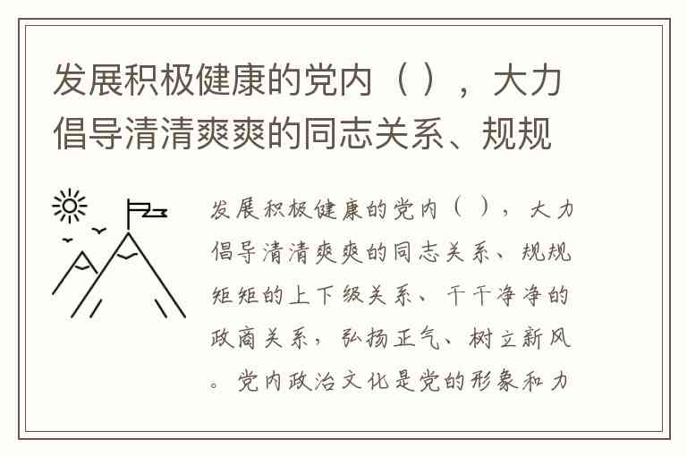 发展积极健康的党内( ),大力倡导清清爽爽的同志关系、规规矩矩的上下级关系、干干净净的政商关系,弘扬正气、树立新风。