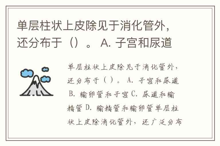 单层柱状上皮除见于消化管外,还分布于()。 A. 子宫和尿道 B. 输卵管和子宫 C. 尿道和输精管 D. 输精管和输卵管