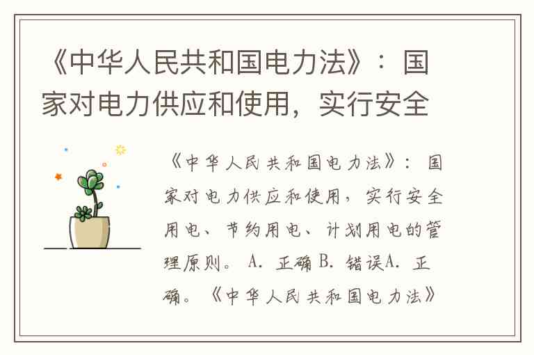 《中华人民共和国电力法》:国家对电力供应和使用,实行安全用电、节约用电、计划用电的管理原则。 A. 正确 B. 错误