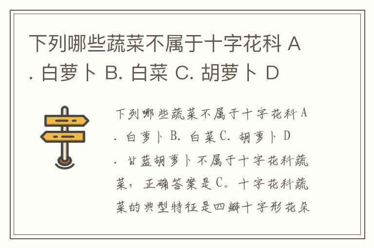 下列哪些蔬菜不属于十字花科 A. 白萝卜 B. 白菜 C. 胡萝卜 D. 甘蓝