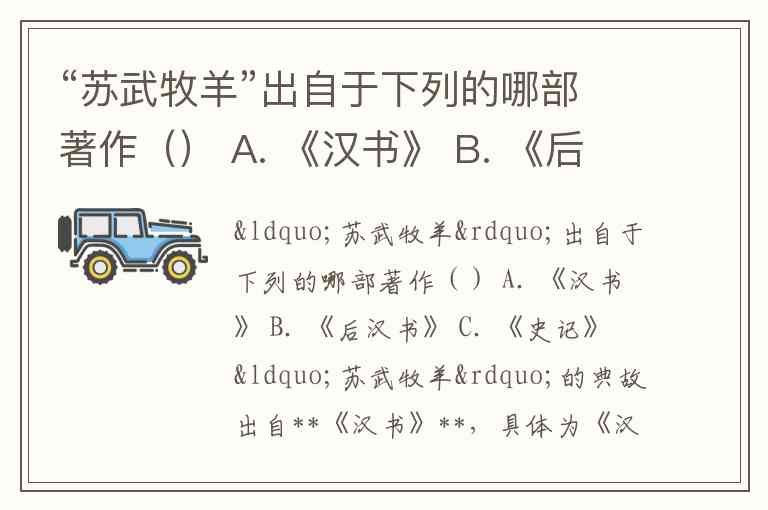 “苏武牧羊”出自于下列的哪部著作() A. 《汉书》 B. 《后汉书》 C. 《史记》