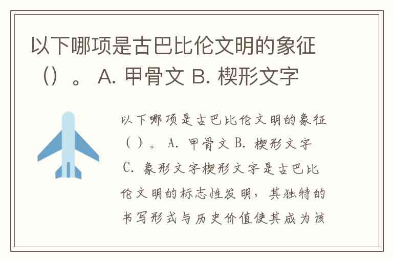 以下哪项是古巴比伦文明的象征()。 A. 甲骨文 B. 楔形文字 C. 象形文字