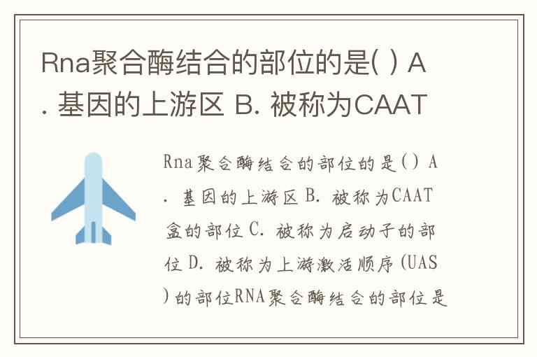 Rna聚合酶结合的部位的是( ) A. 基因的上游区 B. 被称为CAAT盒的部位 C. 被称为启动子的部位 D. 被称为上游激活顺序(UAS)的部位