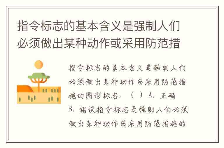 指令标志的基本含义是强制人们必须做出某种动作或采用防范措施的图形标志。( ) A. 正确 B. 错误