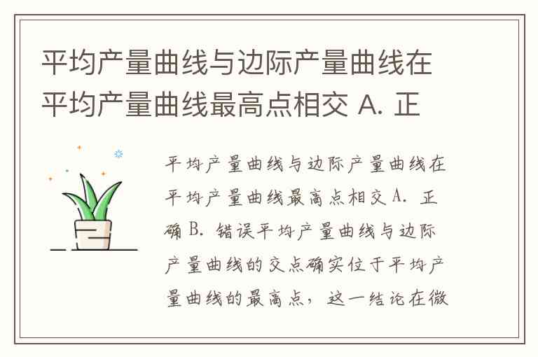 平均产量曲线与边际产量曲线在平均产量曲线最高点相交 A. 正确 B. 错误