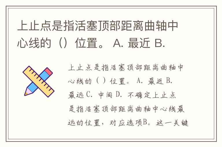 上止点是指活塞顶部距离曲轴中心线的()位置。 A. 最近 B. 最远 C. 中间 D. 不确定