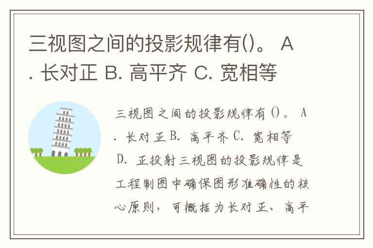 三视图之间的投影规律有()。 A. 长对正 B. 高平齐 C. 宽相等 D. 正投射