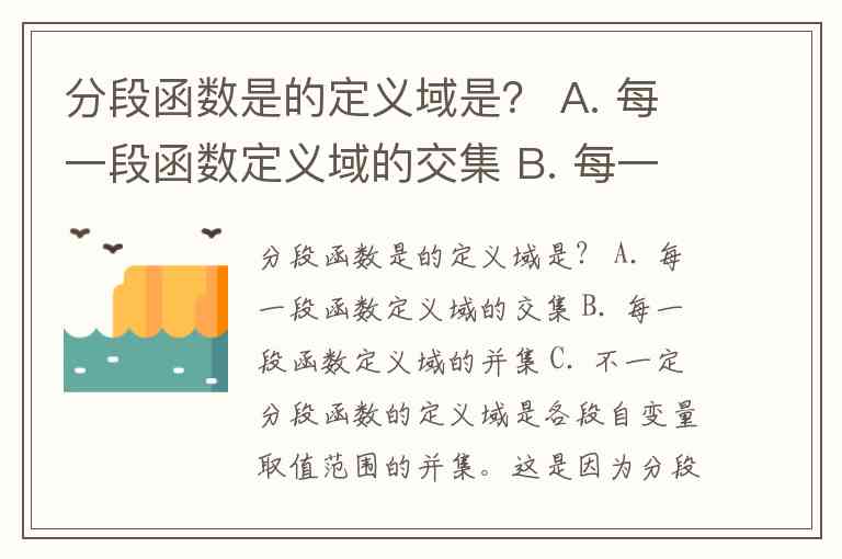 分段函数是的定义域是? A. 每一段函数定义域的交集 B. 每一段函数定义域的并集 C. 不一定