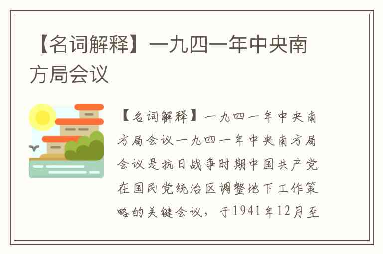 【名词解释】一九四一年中央南方局会议