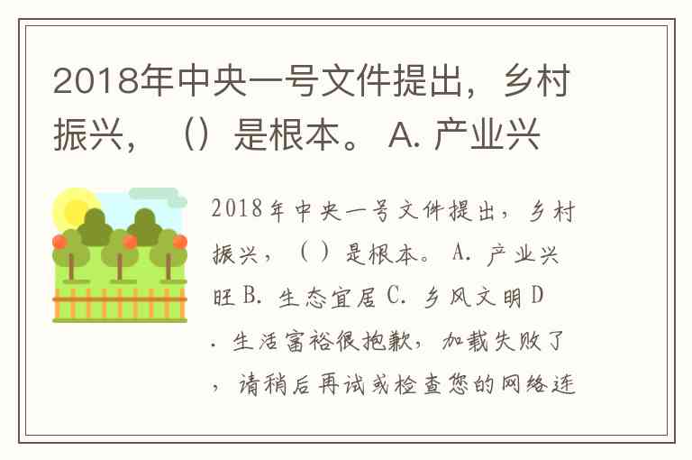 2018年中央一号文件提出,乡村振兴,()是根本。 A. 产业兴旺 B. 生态宜居 C. 乡风文明 D. 生活富裕