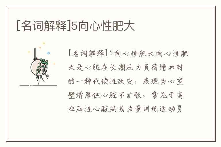 向心性肥大是心脏在长期压力负荷增加时的一种代偿性改变,表现为心室壁增厚但心腔不扩张,常见于高血压性心脏病或力量训练运动员。其核心特征是心肌细胞体积增大,导致心室壁厚度增加(如左心室壁厚度超过11mm),而心腔容积正常甚至缩小。