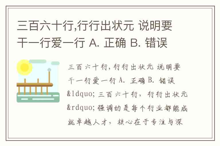 三百六十行,行行出状元 说明要干一行爱一行 A. 正确 B. 错误
