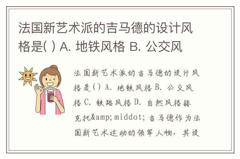 法国新艺术派的吉马德的设计风格是( ) A. 地铁风格 B. 公交风格 C. 铁路风格 D. 自然风格