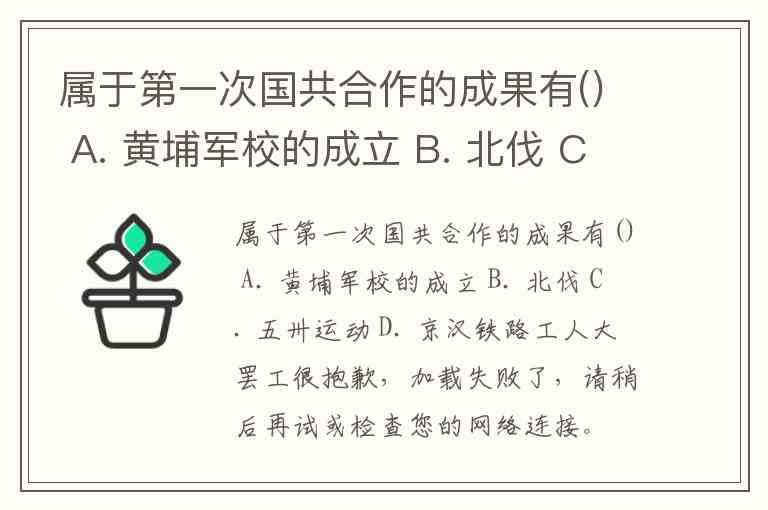 属于第一次国共合作的成果有() A. 黄埔军校的成立 B. 北伐 C. 五卅运动 D. 京汉铁路工人大罢工