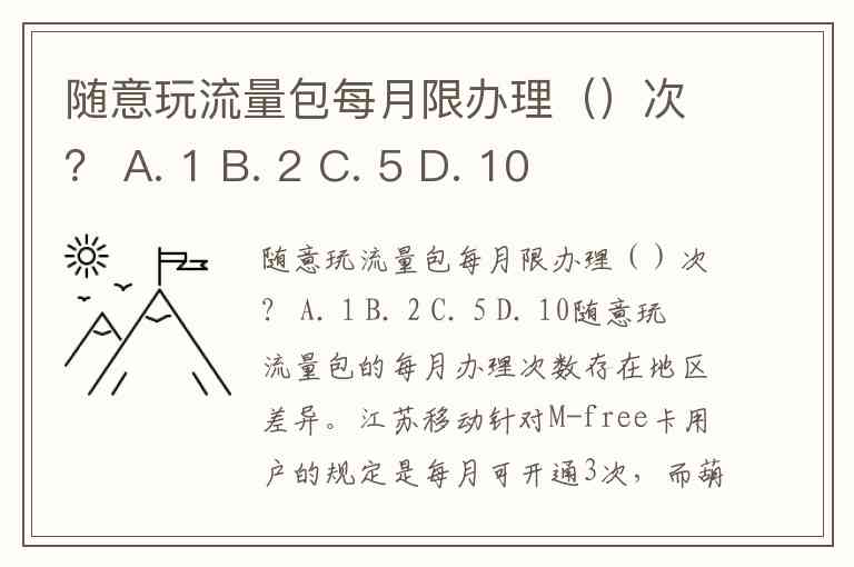 随意玩流量包每月限办理()次? A. 1 B. 2 C. 5 D. 10