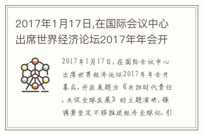 习近平主席在2017年达沃斯论坛发表的《共担时代责任 共促全球发展》演讲,在逆全球化思潮抬头之际,系统阐述了中国对经济全球化的立场,明确提出打造"开放共赢的合作模式"和"平衡普惠的发展模式",彰显了中国坚持开放、合作、共赢的发展理念。演讲中"不要埋怨自己,不要指责他人,不要放弃信心,不要逃避责任"的主张,以及"把全球市场的蛋糕做大"的倡议,直接呼应了"坚持互惠互信,实现共同发展"的核心思想。