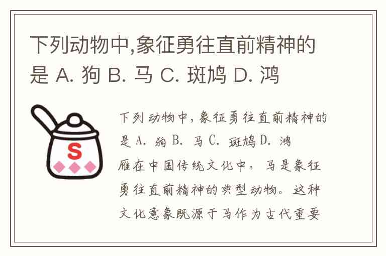 下列动物中,象征勇往直前精神的是 A. 狗 B. 马 C. 斑鸠 D. 鸿雁