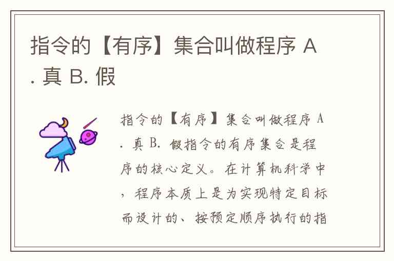 指令的【有序】集合叫做程序 A. 真 B. 假