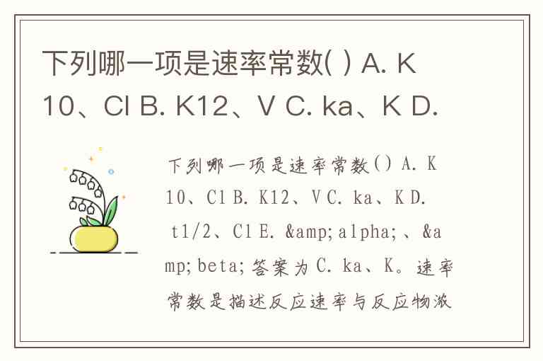 下列哪一项是速率常数( ) A. K10、Cl B. K12、V C. ka、K D. t1/2、Cl E. α、β