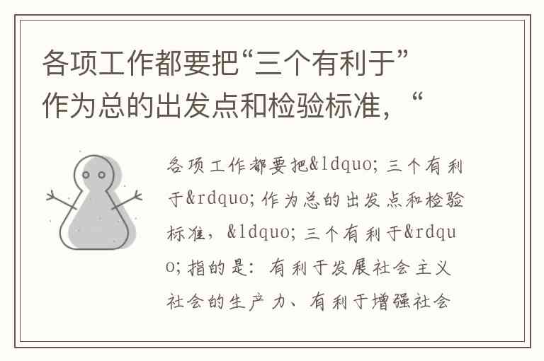 各项工作都要把“三个有利于”作为总的出发点和检验标准,“三个有利于”指的是:有利于发展社会主义社会的生产力、有利于增强社会主义国家的综合国力、_。 答案:有利于提高人民的生活水平 _160.要尊重劳动、尊重知识、尊重人才、尊重创造,做到_。 答案:发展为了人民、发展依靠人民、发展成果由人民共享 _161.全面深化改革总目标包括_。