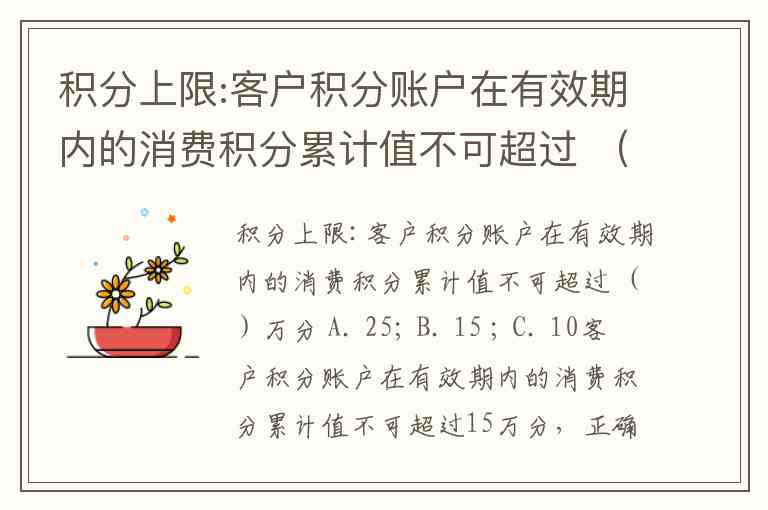 积分上限:客户积分账户在有效期内的消费积分累计值不可超过 ()万分 A. 25; B. 15 ; C. 10