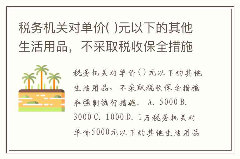 税务机关对单价( )元以下的其他生活用品,不采取税收保全措施和强制执行措施。 A. 5000 B. 3000 C. 1000 D. 1万
