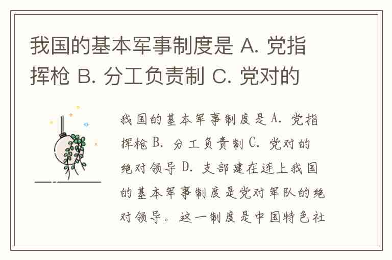 我国的基本军事制度是 A. 党指挥枪 B. 分工负责制 C. 党对的绝对领导 D. 支部建在连上