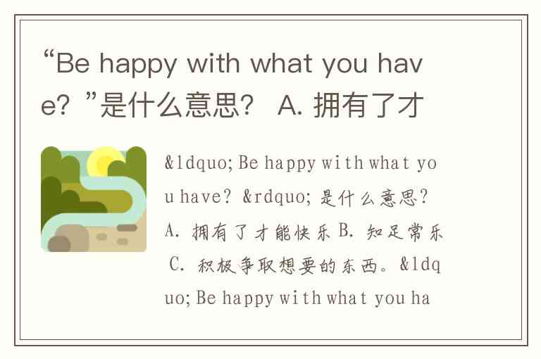 “Be happy with what you have?”是什么意思? A. 拥有了才能快乐 B. 知足常乐 C. 积极争取想要的东西。