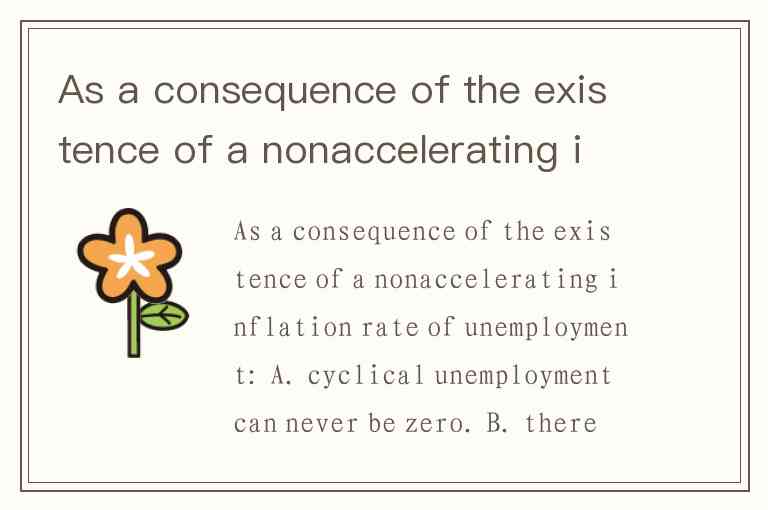 As a consequence of the existence of a nonaccelerating inflation rate of unemployment: A. cyclical unemployment can never be zero. B. there is no short-run trade-off between unemployment and inflation. C. money is neutral. D. there is no long-run trade-off between unemployment and inflation.