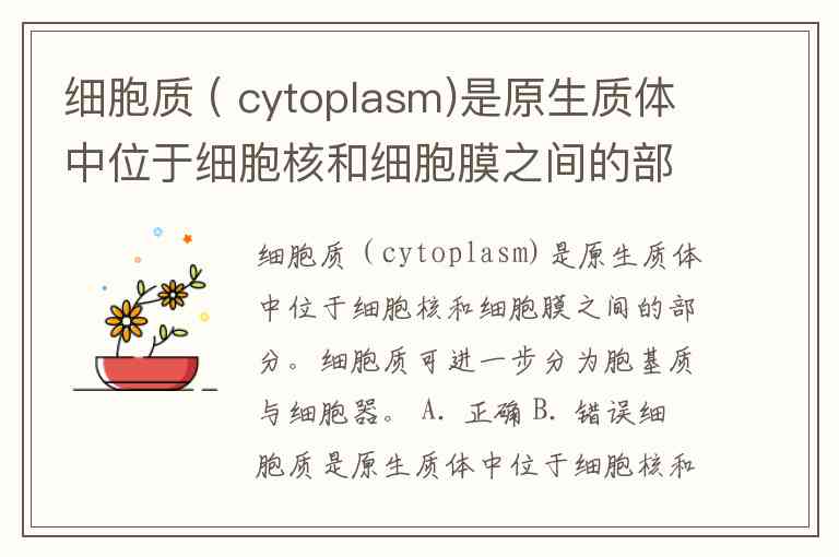 细胞质 ( cytoplasm)是原生质体中位于细胞核和细胞膜之间的部分。细胞质可进一步分为胞基质与细胞器。 A. 正确 B. 错误