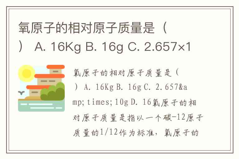氧原子的相对原子质量是( ) A. 16Kg B. 16g C. 2.657×10g D. 16