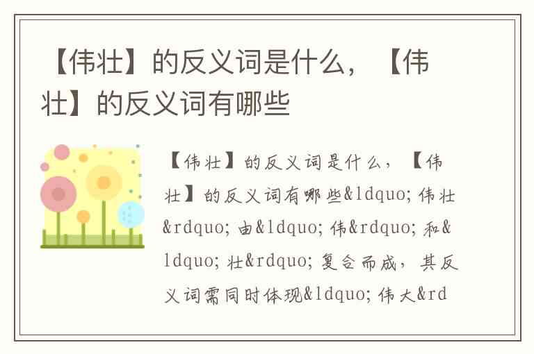 【伟壮】的反义词是什么,【伟壮】的反义词有哪些