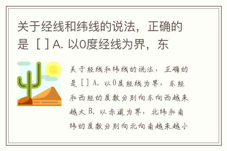 关于经线和纬线的说法中,正确的是 A选项。