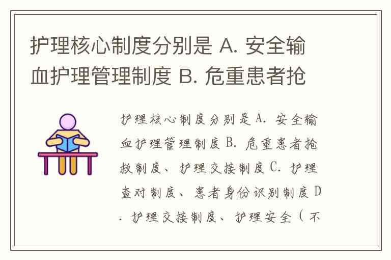 护理核心制度分别是 A. 安全输血护理管理制度 B. 危重患者抢救制度、护理交接制度 C. 护理查对制度、患者身份识别制度 D. 护理交接制度、护理安全(不良)事件报告制度 E. 医嘱执行制度 、患者安全管理制度 F. 责任制整体护理实施管理制度