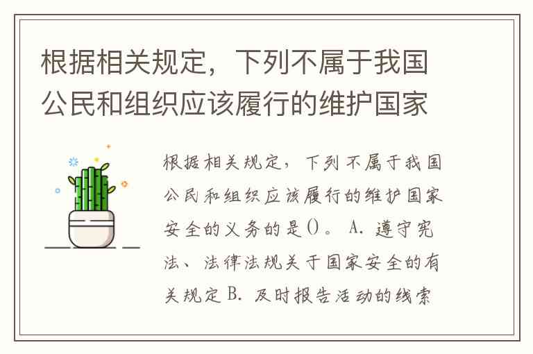 根据相关规定,下列不属于我国公民和组织应该履行的维护国家安全的义务的是()。 A. 遵守宪法、法律法规关于国家安全的有关规定 B. 及时报告活动的线索 C. 向国家机关提出关于国家安全工作的批评建议 D. 为国家安全工作提供便利条件或者其他协助