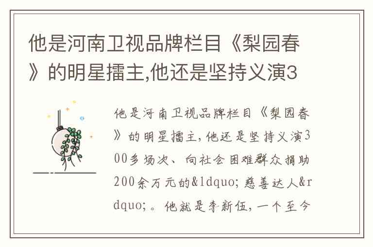 李新伍的事迹展现了个人奉献与社会价值的统一。他通过义演和捐助践行社会责任,同时实现了自我价值的提升,体现了新时代公民的责任担当。